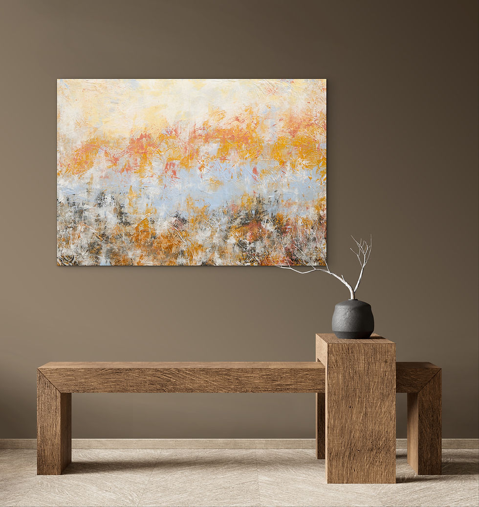 Prinášam koncept, ktorý spája osobnú tvorbu s individuálnym prístupom ku klientovi. Každý obraz vzniká na mieru – po osobnom rozhovore, kde spoločne hľadáme harmóniu medzi priestorom, farbami a emóciou.